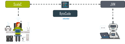 Ans: Code is written in Scala IDE or a Scala REPL, Later, the code is converted into a Byte code and transferred to the JVM or Java Virtual Machine for compilation.