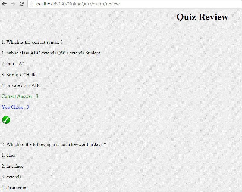 This is the third post in the series of creating an online quiz application using JSP Servlet.
