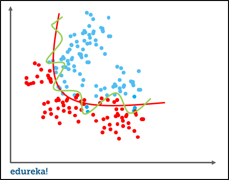 The line seen in the image above can give a very efficient outcome for a new data point. In the case of overfitting, when we run the training algorithm on the data set, we allow the cost to reduce with each number of iteration.