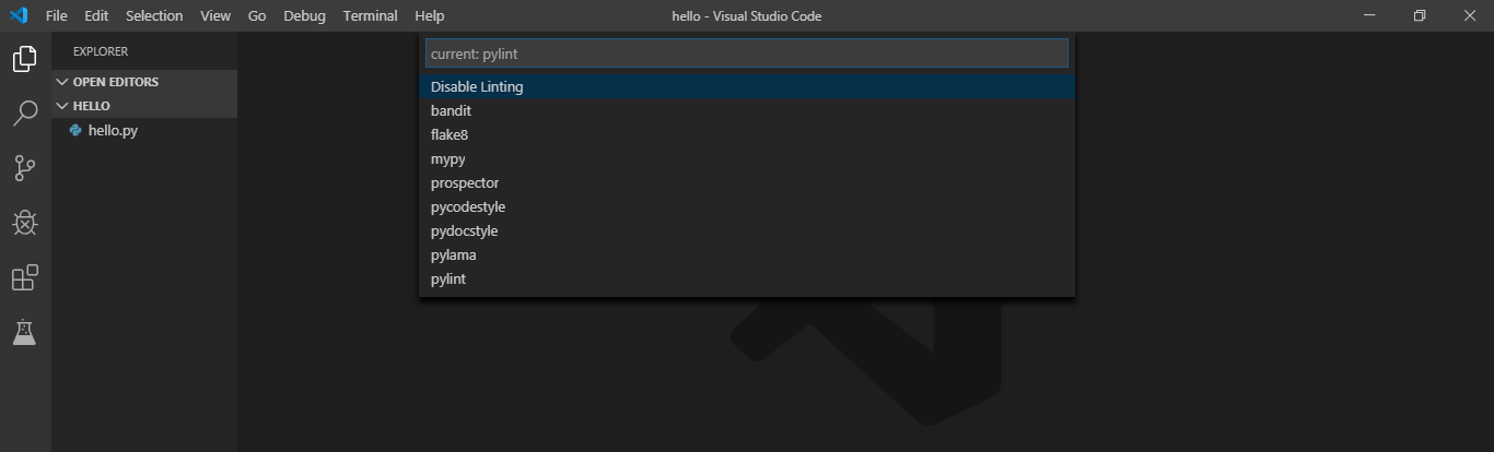 It basically highlights the syntactic and styling problems in the python source code. To enable linters we can use the following approach, although the python extension comes enabled with a pylint linter as a default. Press “ctrl+shift+p” and select the python: select linter in the pallet.